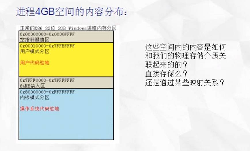 在所谓的4GB空间内,系统内核占据了高2GB的空间,普通进程看不见摸不着,而且高2GB的空间是全局共享。全局就那么一份,各个进程间共享