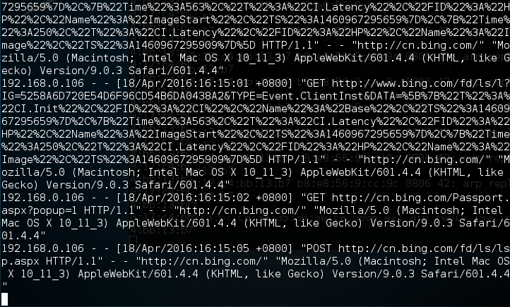 urlsnarf outputs all requested URLs sniffed from HTTP traffic in CLF(Common Log Format, used by almost all web servers), suitable for off‐line post-processing with your favorite web log analysis tool (analog,wwwstat, etc.).