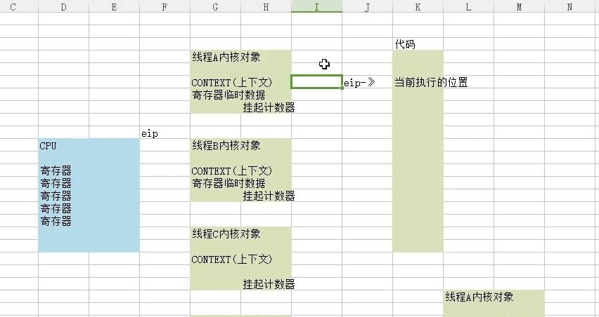 >操作系统会给每一个线程都分配一定的时间,在一点时间内CPU加载对应的线程上下文执行线程对应代码和EIP所指向的位置、堆栈等,时间过后就保存当前执行的环境,然后更换线程上下文,来回调度。对于CPU来说 一瞬间就做了一件事,但是CPU速度非常快。在我们看起来就是一起做很多事情什么是线程?