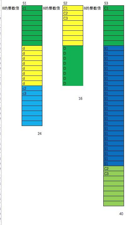 结构体 字节对齐的练习 2018.1.7 2025.11.6 C-lang 219 1 分钟 分析结构体大小 1 2 3 4 5 6 7 8 9 10 11 12 13 14 15 16 17 18 19 20 21 22 struct S1 { char c1; double d; char c2; char c3; }; struct S2 { char c1; char c2; char c3; double d; }; struct S3 { char c1; S1 s; char c2; char c3; }; 分析结构体大小 1 2 3 4 5 6 7 8 9 10 11 12 13 14 15 16 #pragma pack(1) struct S1 { char c1; double d; char c2; char c3; }; #pragma pack() struct S3 { char c1; S1 s; char c2; char c3; }; 分析结构体大小 1 2 3 4 5 6 7 8 9 10 11 12 13 14 15 16 17 #pragma pack(4) struct S1 { char c1; double d; char c2; char c3; }; #pragma pack() struct S3 { char c1; S1 s; char c2; char c3; }; 分析结构体大小 1 2 3 4 5 6 7 8 9 10 11 12 13 14 15 16 struct S1 { char c1; double d; char c2; char c3; }; #pragma pack(1) struct S3 { char c1; S1 s; char c2; char c3; }; #pragma pack() 作者:luodaoyi链接:https://luodaoyi.com/posts/结构体-字节对齐的练习-结构体字节对齐的练习/许可: CC BY-NC-SA 4.0