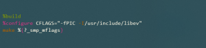 这时需要编辑redhat/sniproxy.spec,在26行找到%configure CFLAGS="-I/usr/include/libev",把这一行改为%configure CFLAGS="-fPIC -I/usr/include/libev"