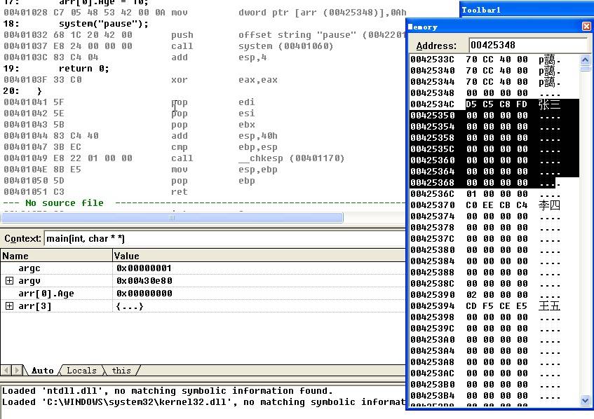 我们观察到 结构体数组在内存中是连续存储的