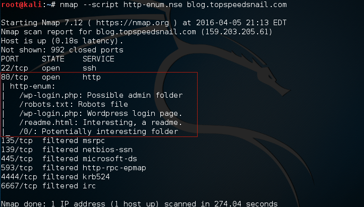 # nmap –script http-enum.nse blog.topspeedsnail.com